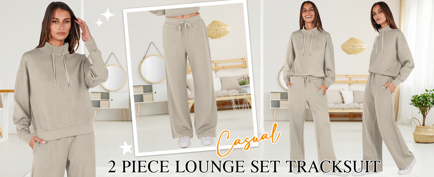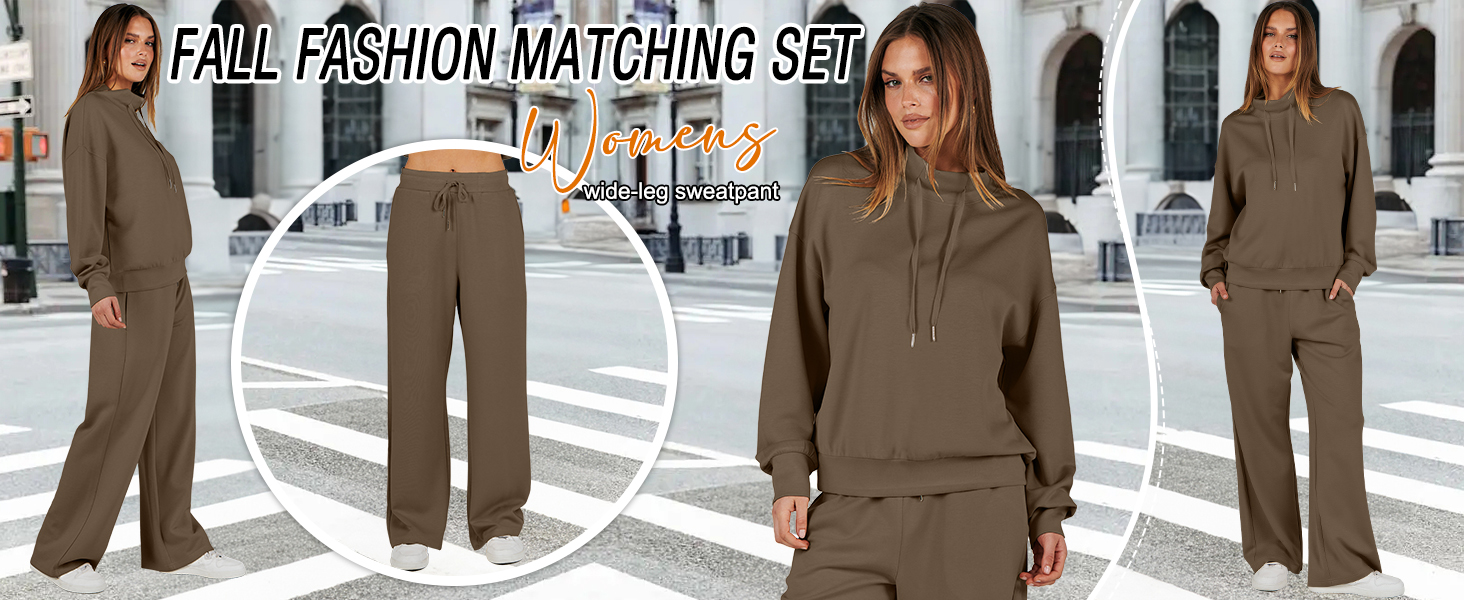Womens 2 Piece Outfits Sweatsuit Set 2023 Fall Drawstring Sweatshirt Wide Leg Sweatpant Lounge Set Tracksuit