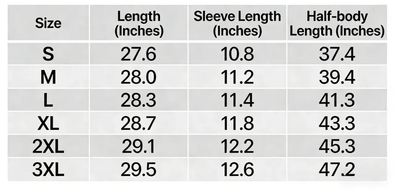 Available Sizes: S, M, L, XL, 2XL, 3XL